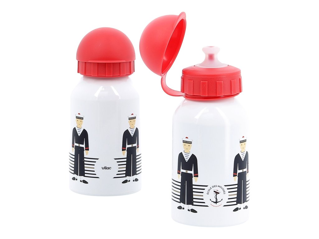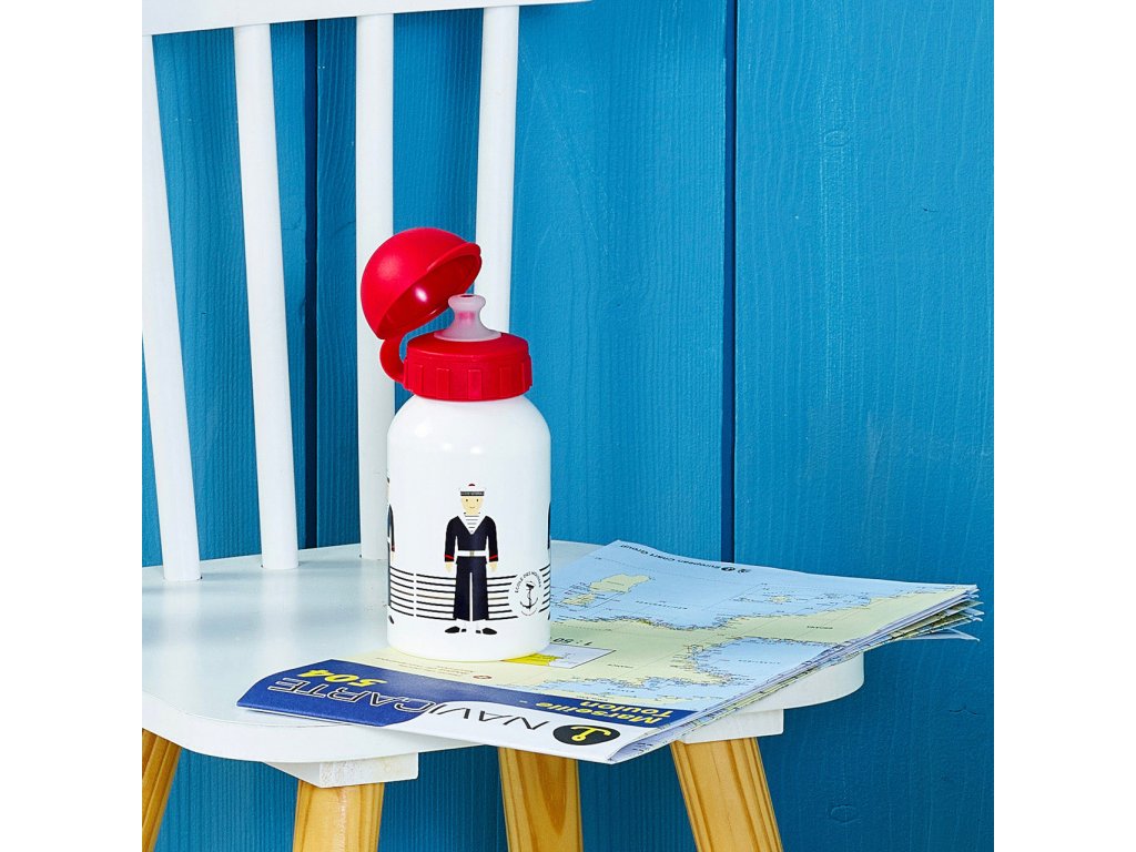 Velmi lehká a odolná hliníková láhev na nápoje, s roztomilými námořnickými ilustracemi. Výsuvný náustek brání vylití obsahu a je opatřen krytkou, která jej udržuje v čistotě. Láhev je možno mýt v myčce na nádobí. Hlavní vlastnosti: objem 300 mllehká a odolná Šťastnou plavbu! To je přání námořníkům, kteří vyráží na moře. Toto přeje i Vilac, se svou kolekcí, kterou vyvinuli ve spolupráci s francouzským námořnictvem. Vůni moře vítr dofoukal až do pohoří Jura, výsledek jistě potěší malé námořníky a námořnice, také dospělé, kteří pečují o své vnitřní dítě!Doplňkové parametry