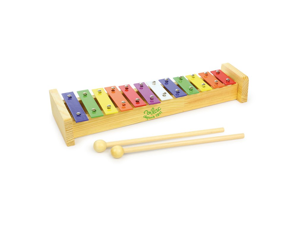 Vícebarevný xylofon, díky kterému se menší děti naučí poznávat barvy a starší skládat melodie. Hlavní vlastnosti: dřevěný xylofón s 12 kovovými klapkamipodporuje kreativitu a cit pro rytmusDoplňkové parametry
