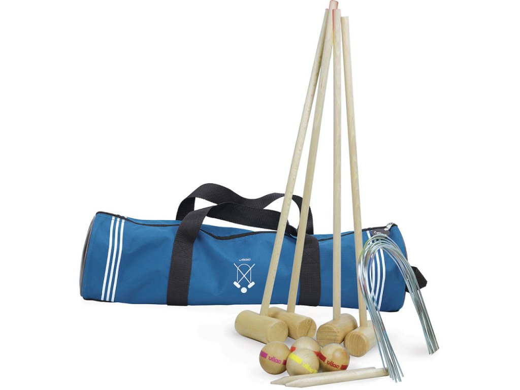Sada na tradiční kroket pro čtyři hráče, balená v praktické příruční tašce. Koule, hole a kolíky jsou vyrobeny z masivního lakovaného dřeva. Hlavní vlastnosti: pro 4 hráčevyrobeno ve FranciiDoplňkové parametry