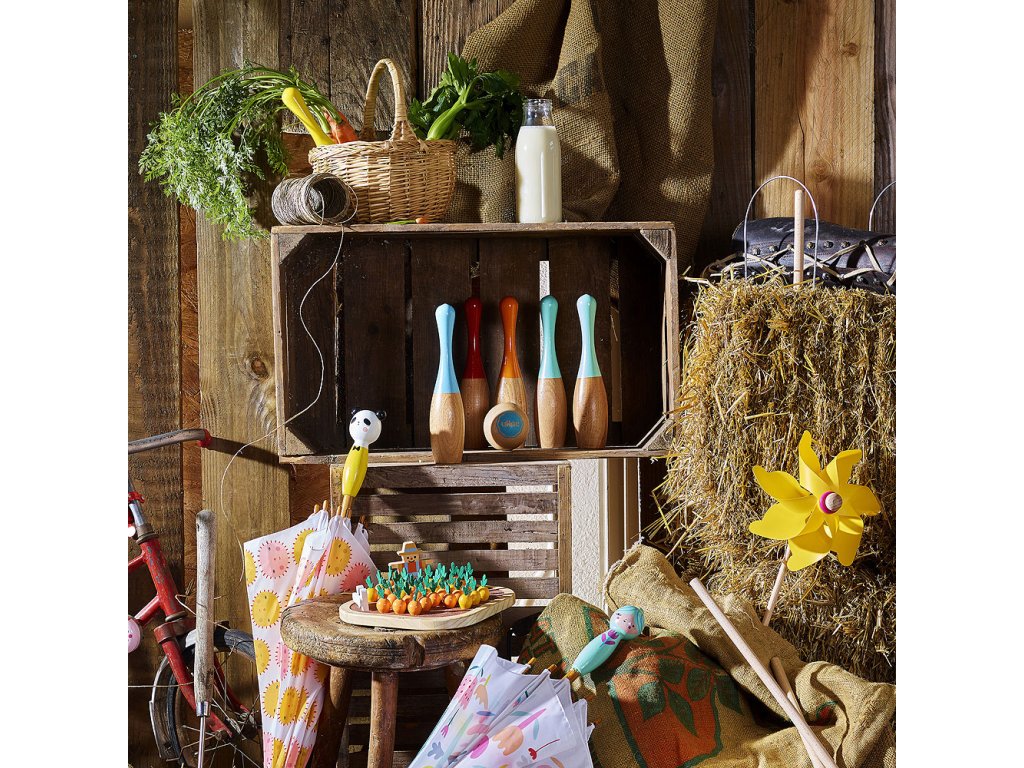 Sada 6 kuželek z lakovaného dřeva. Kuželky jsou napůl přírodní a napůl barevné. V praktickém balení naleznete také 2 dřevěné koule. Zabaleno v bavlněném pytlíku. Vyrobeno ve Francii. Hlavní vlastnosti: vyrobeno z odolného dřevabaleno v praktickém látkovém pytlíkuobsahuje 6 kuželek a 2 hrací koulevyrobeno ve FranciiDoplňkové parametry