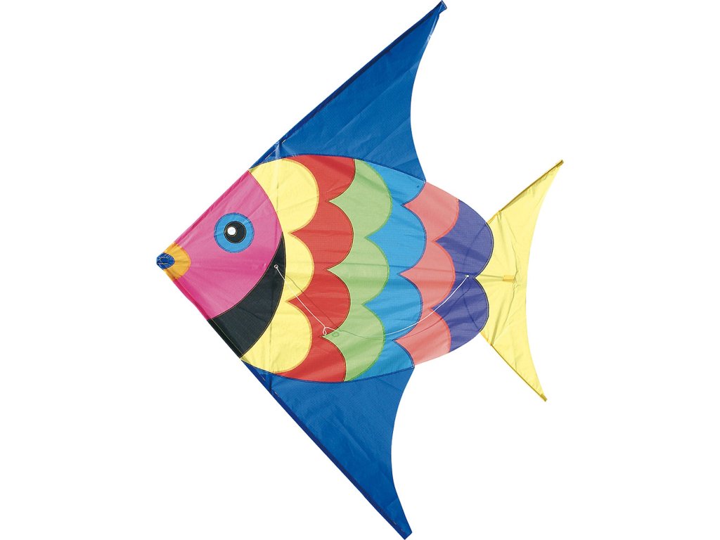 Velký létající drak ve tvaru barevné ryby. Hlavní vlastnosti: pevná konstrukce, aerodynamický tvarpodporuje pohybovou aktivitudélka 140 cmDoplňkové parametry