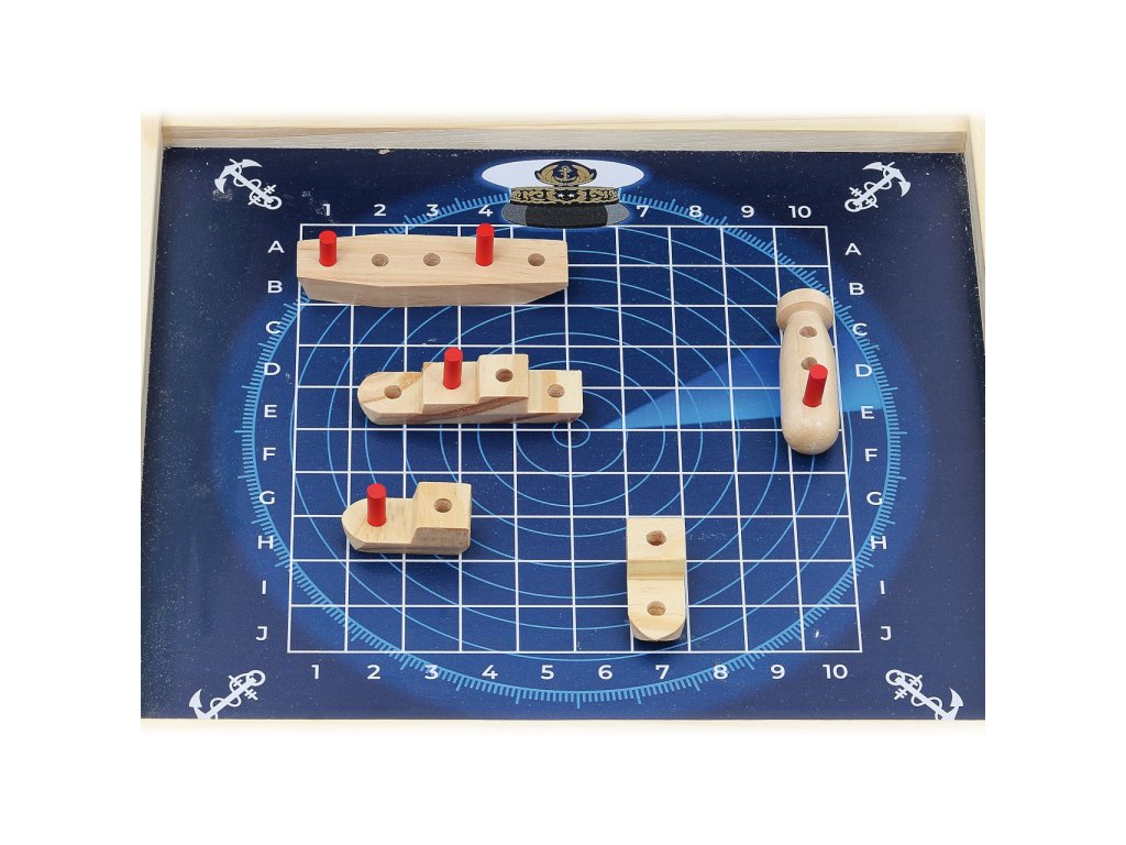 Klasická strategická hra v přenosném dřevěném kufříku, s motivy francouzského námořnictva může dětem pomoci zábavnou formou rozvíjet poznávací dovednosti. Cílem hry je střídavým tipováním v souřadném systému jako první odhalit pozice protihráčovy flotily a potopit ji. Kufřík se po rozložení promění na hrací pole oddělené přepážkou, jejíž povrch je přizpůsoben k psaní křídou. Křídy jsou součástí balení a slouží hráčům k zaznamenávání vývoje hry. Sady loděk různých velikostí a tvarů jsou spolu s tyčinkami označujícími případné zásahy baleny ve dvou dekorovaných textilních sáčcích. Herní dílky jsou vyrobeny z masivního, pečlivě opracovaného dřeva. Díky praktickému kufříku lze hru vždy snadno uklidit a může děti provázet na cestách. Hlavní vlastnosti: kufřík s herním plánem, 10 lodí, 40 tyčinek, 2 sáčky a 2 křídyatraktivní a odolné dřevěné zpracovánípraktické balení Šťastnou plavbu! To je přání námořníkům, kteří vyráží na moře. Toto přeje i Vilac, se svou kolekcí, kterou vyvinuli ve spolupráci s francouzským námořnictvem. Vůni moře vítr dofoukal až do pohoří Jura, výsledek jistě potěší malé námořníky a námořnice, také dospělé, kteří pečují o své vnitřní dítě!Doplňkové parametry