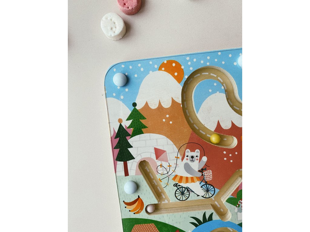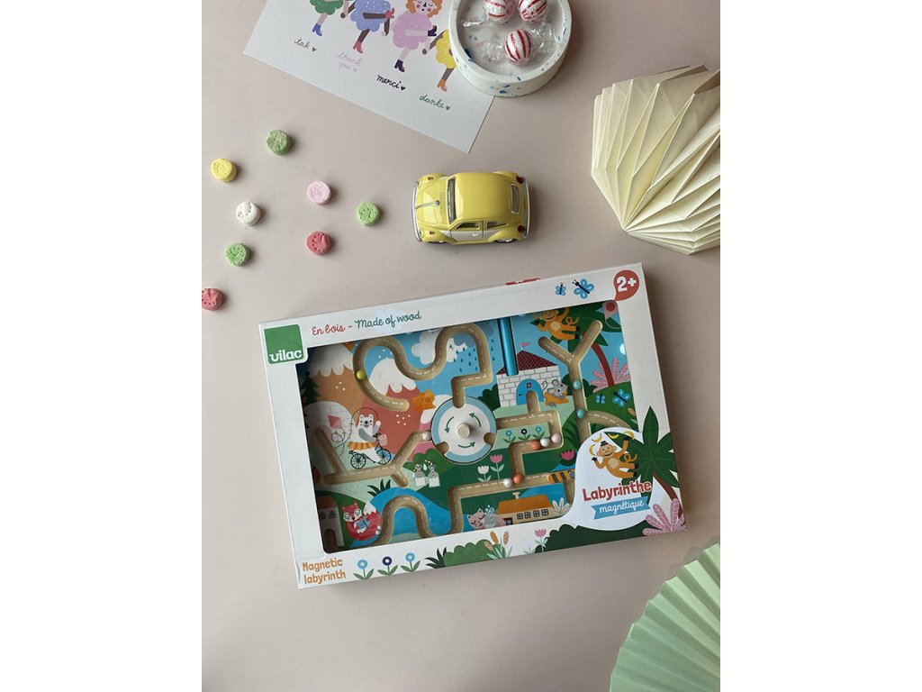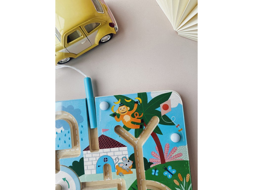 Uveďte děti do poetického světa s ilustracemi Michelle Carlslundové. Pomocí magnetického pera se mohou pokoušet přihrát jednotlivým zvířátkům jejich kuličky. Dostane pan kocour své mléko, bílé kuličky? Rozverná opička své banány, žluté kuličky? Komupak rozdat kuličky ostatních barev, přátelskému medvídkovi, chytré lišce, nebo hbité myšce? Na cestě čeká množství překážek a nástrah, které mohou děti překonávat pomocí svého důvtipu. Zábavnou formou takto mohou trénovat jemnou motoriku nebo orientaci v prostoru. Při snaze pojmenovat vyobrazená zvířátka i děje a pochopit souvislosti mezi nimi lze také rozvíjet poznávací dovednosti. Hlavní vlastnosti: bludiště a magnetické perozábavné i bezpečné díky magnetickému principudesign Michelle Carlslund Cestujte s námi v naivním a elegantním světě dánské ilustrátorky Michelle Carlslund, světě jemných barev, který je plný roztomilých medvědů a přátelských ptáčků. V roce 2010, když Michelle ještě studovala grafický design, vytiskla doma své ilustrace a zkusila je prodat na designovém trhu, kde se setkaly s velkým úspěchem! Několik obchůdků chtělo začít prodávat její výtvory, a tak ji napadlo, že by bylo fajn začít podnikat. Michelle se rychle stala uznávanou nezávislou ilustrátorkou. Dnes lze její ekologická grafická díla zakoupit po celém světě v designových buticích, papírnictvích a dětských obchodech. Michelle se inspiruje vším kolem ní. Její výtvory jsou něžné a poetické, stylizovaný a dětinský styl, který se perfektně prolíná s hračkami firmy Vilac. „Jsem hranolky milující, časová optimistka a tvůrkyně ekologických plakátů a ilustrátorka na volné noze se sídlem v dánské Kodani,“ to by řekla ilustrátorka Michelle Carlslundová, kdyby se měla popsat jednou větou.Doplňkové parametry