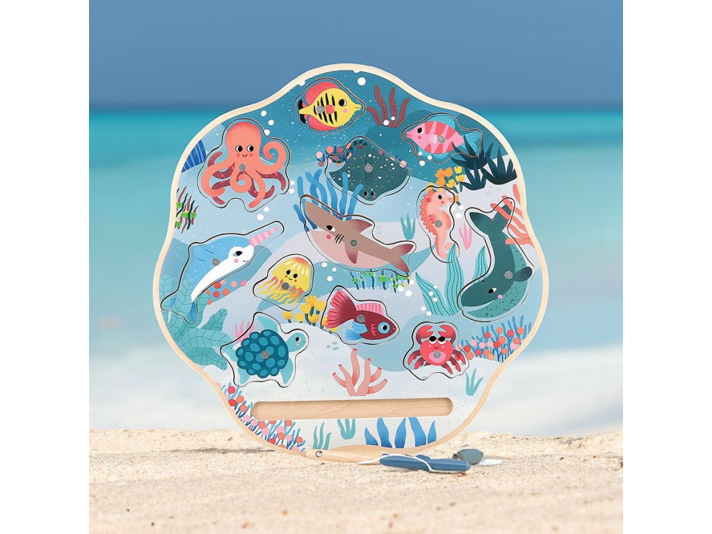 Magnetická hra, která Vás opravdu nadchne! Rybařte s mořskými živočichy v krásném designu od ilustrátorky Michelle Carlsund. Podaří se Vám z moře vytáhnout rejnoka, velrybu, kraba, želvu či medúzu? K dispozici je celkem 12 barevných mořských zvířatek. Chyťte je všechny! Každý živočich má na zadní straně číslo, které označuje body. Až se Vám podaří vytáhnout všechny mořské živočichy, otočte je dnem vzhůru a spočítejte si body. Při hře tedy nezáleží na tom, kolik zvířatek se Vám podaří prutem vytáhnout, ale na tom, kdo má více bodů. Hra stimuluje kognitivní vývoj vašeho dítka. Rozvíjí koordinaci ruka-oko a jemnou motoriku. Podporuje také smyslové a vzdělávací učení. Hra obsahuje: 12 dřevěných mořských živočichů, 2 dřevěné pruty s magnetem a 1 herní základnu Hlavní vlastnosti: klasická hra v krásném designuinspirováno Montessori hračkamirozvíjí soustředění a trpělivostnapomáhá učení počítání a zapamatování sivhodné od 2 lettato hra může sloužit také jako vkládací puzzle Cestujte s námi v naivním a elegantním světě dánské ilustrátorky Michelle Carlslund, světě jemných barev, který je plný roztomilých medvědů a přátelských ptáčků. V roce 2010, když Michelle ještě studovala grafický design, vytiskla doma své ilustrace a zkusila je prodat na designovém trhu, kde se setkaly s velkým úspěchem! Několik obchůdků chtělo začít prodávat její výtvory, a tak ji napadlo, že by bylo fajn začít podnikat. Michelle se rychle stala uznávanou nezávislou ilustrátorkou. Dnes lze její ekologická grafická díla zakoupit po celém světě v designových buticích, papírnictvích a dětských obchodech. Michelle se inspiruje vším kolem ní. Její výtvory jsou něžné a poetické, stylizovaný a dětinský styl, který se perfektně prolíná s hračkami firmy Vilac. „Jsem hranolky milující, časová optimistka a tvůrkyně ekologických plakátů a ilustrátorka na volné noze se sídlem v dánské Kodani,“ to by řekla ilustrátorka Michelle Carlslundová, kdyby se měla popsat jednou větou.Doplňkové parametry