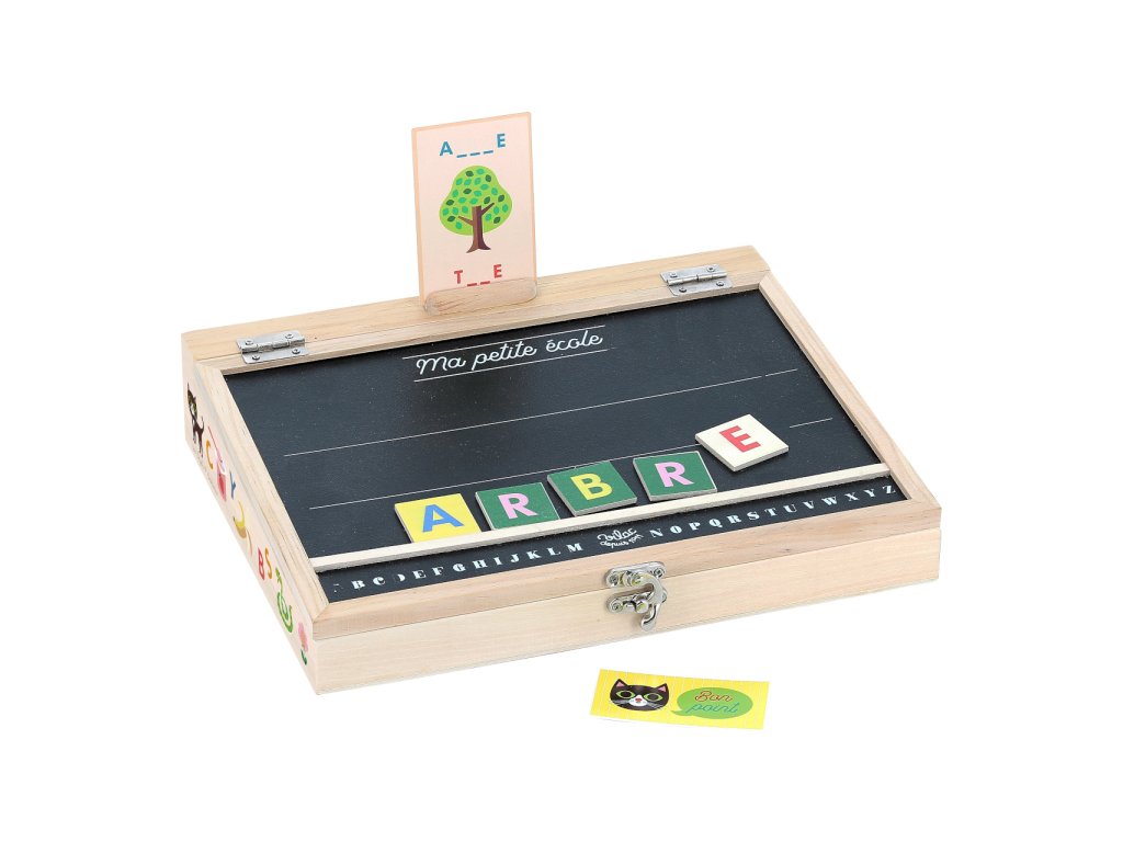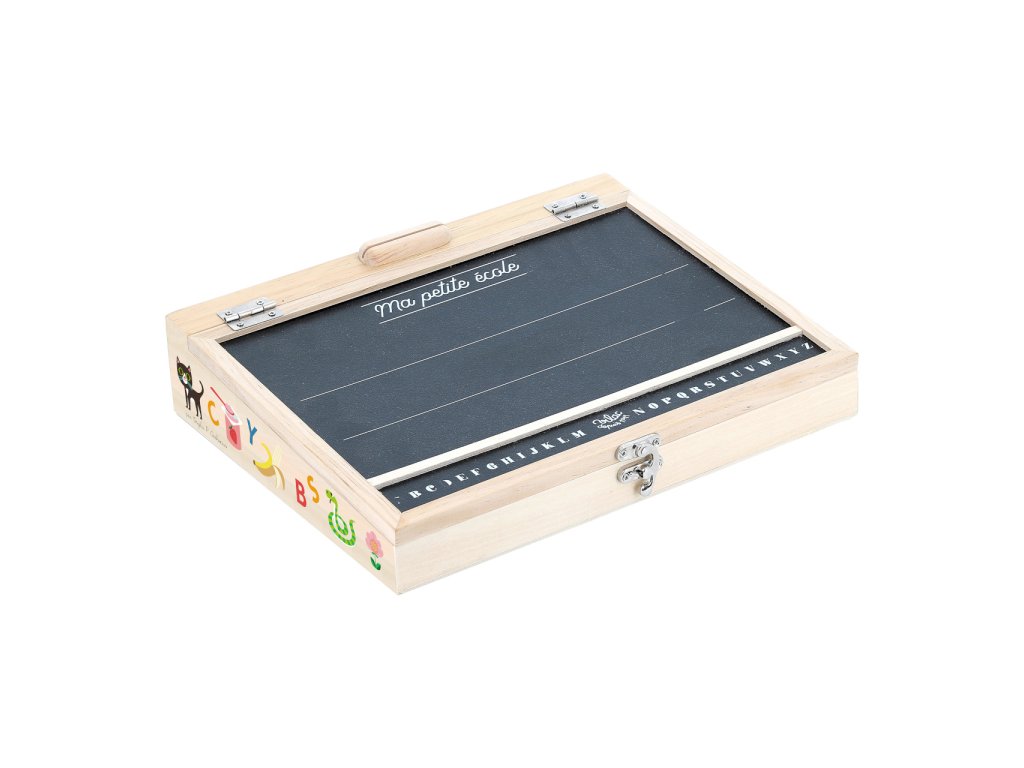 Vraťte se do časů, kdy školu navštěvovaly Vaše babičky! A to díky skříňové tabulce bohatě dekorované pestrobarevnými ilustracemi Ingely P. Arrhenius. Její pomocí se lze samozřejmě učit psát a počítat, ale také rozšiřovat slovní zásobu o anglická a francouzská slovíčka. Uvnitř skříňky totiž naleznete velkou sadu rozmanitých dřevěných dílků a karet, ať už s písmeny, čísly, či celými příklady a slůvky. Správné odpovědi a úspěšná řešení můžete odměňovat bodovacími kartičkami. Součástí tabulky je také dvojice kříd, proto ji můžete začít bezprostředně používat. Skříňka je pevná a odolná, vyrobená ze dřeva příjemného na dotek. Pomocí jednoduchého zámku ji lze bezpečně uzavřít, může Vás tak provázet na cestách, aniž by hrozilo vysypání jejího obsahu. Hlavní vlastnosti: tabulka se 2 křídami; 70 dílků s písmeny, čísly a znaky; 80 karet slovíček, 30 karet početních příkladů, 12 bodovacích karetk výuce angličtiny a francouzštinydesign Ingela P. Arrheniuspevné a odolné provedenípraktické balení Švédská umělkyně Ingela Peterson Arrhenius se narodila v roce 1967. Umění a design měly vždy místo v jejím životě a než začala její kariéra ilustrátorky, Ingela pracovala jako umělecká vedoucí ve Stockholmu. Poté studovala reklamní a grafický design na umělecké škole také ve Stockholmu. V roce 1992 začala podnikat jako ilustrátorka na volné noze a pracovala mezinárodně napříč reklamou, designem, nakladatelstvím… V minulosti vytvářela tiskové vzory pro tkaniny, tapety, papírnictví, také pracovala na obalech, produktovém designu, bytových doplňcích a hračkách. Její plakáty a designové hračky najdete po celém světě. Má vášeň pro retro styl, což je jasně vidět na jejich dílech a také v jejím nadšení pro typografii a barvy. Nyní žije ve Stockholmu s manželem a 2 syny.Doplňkové parametry