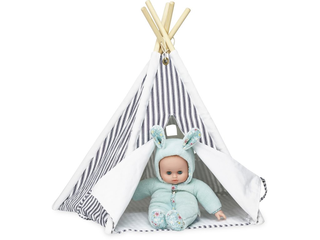 Krásné pruhované týpí v mini provedení, ideální pro panenky. Dřevěný základ s textilním přehozem je jednoduché složit. Textil je tmavě šedý a bílý. Hlavní vlastnosti: týpí pro panenkypevná konstrukceDoplňkové parametry