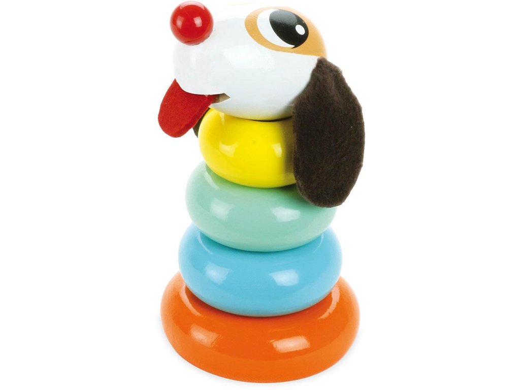 Krásná nasazovačka z lakovaného dřeva s pastelovými barvami, nahoře hlavička pejska s plyšovýma ušima. Vyrobeno ve Francii. Hlavní vlastnosti: vyrobeno ve Franciiprocvičuje jemnou motoriku dětíDoplňkové parametry