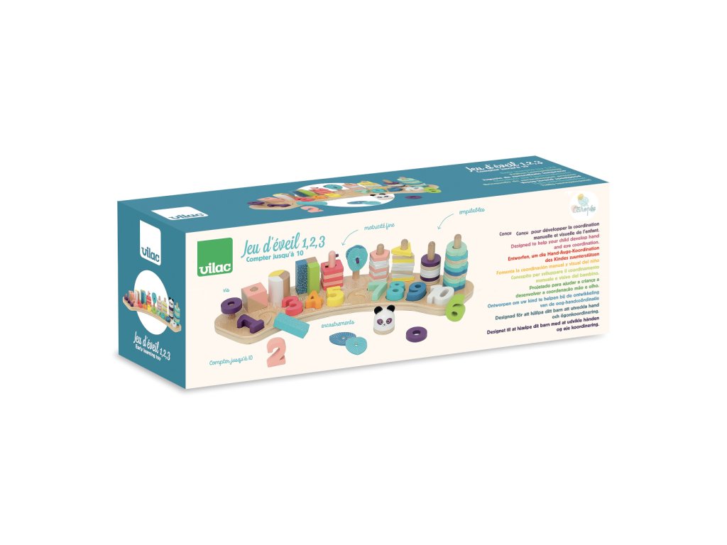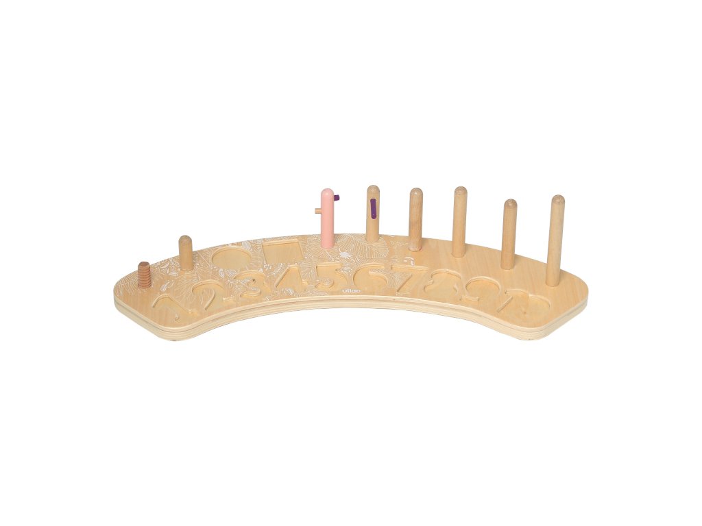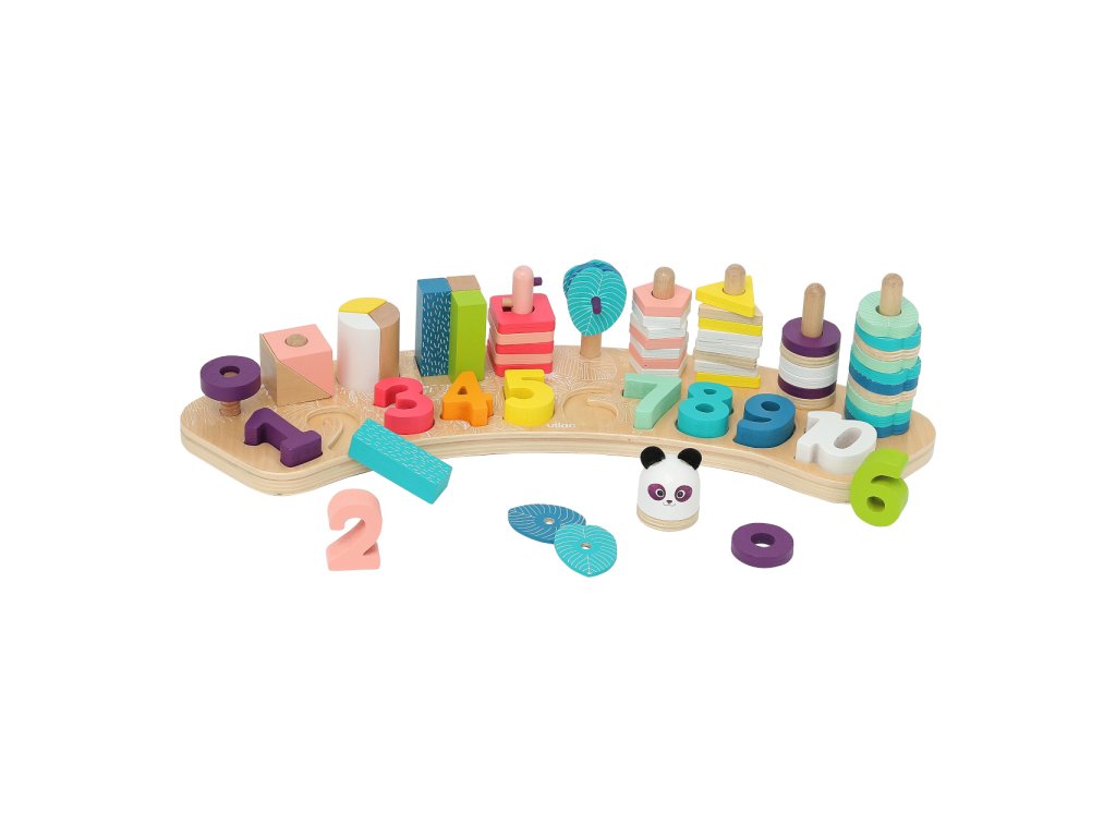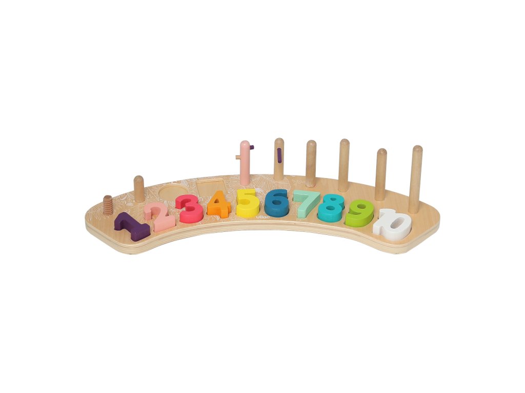 Pomocí jednoduché skládačky mohou děti poznávat čísla a jejich význam utvářením spojitostí mezi zrakem a motorikou. Na jejím návrhu se podíleli odborníci a je vytvořena tak, aby děti jednotlivé vztahy mohly objevovat přirozeně a samostatně v souladu s praxí výukových metod Montessori. Třídění rozmanitých, atraktivních barev, vzorů a tvarů pomáhá dětem rozvíjet soustředění a celou škálu poznávacích dovedností. Pečlivě opracované, pevné a odolné dřevo, z něhož je hračka vyrobena, při hře jemně rozvíjí a stimuluje hmat. Hlavní vlastnosti: základna, 65 vkládacích a nasazovacích dílkůvede k samostatnému objevování a poznáváníatraktivní design a zpracováníDoplňkové parametry