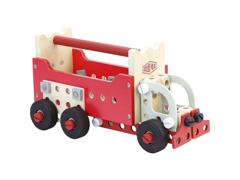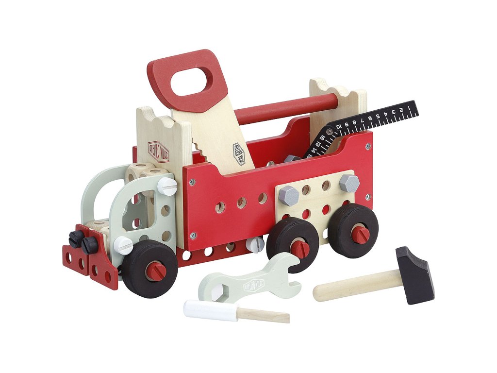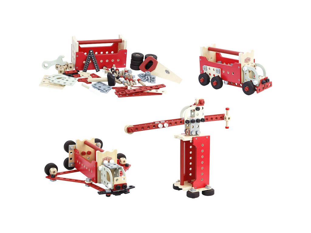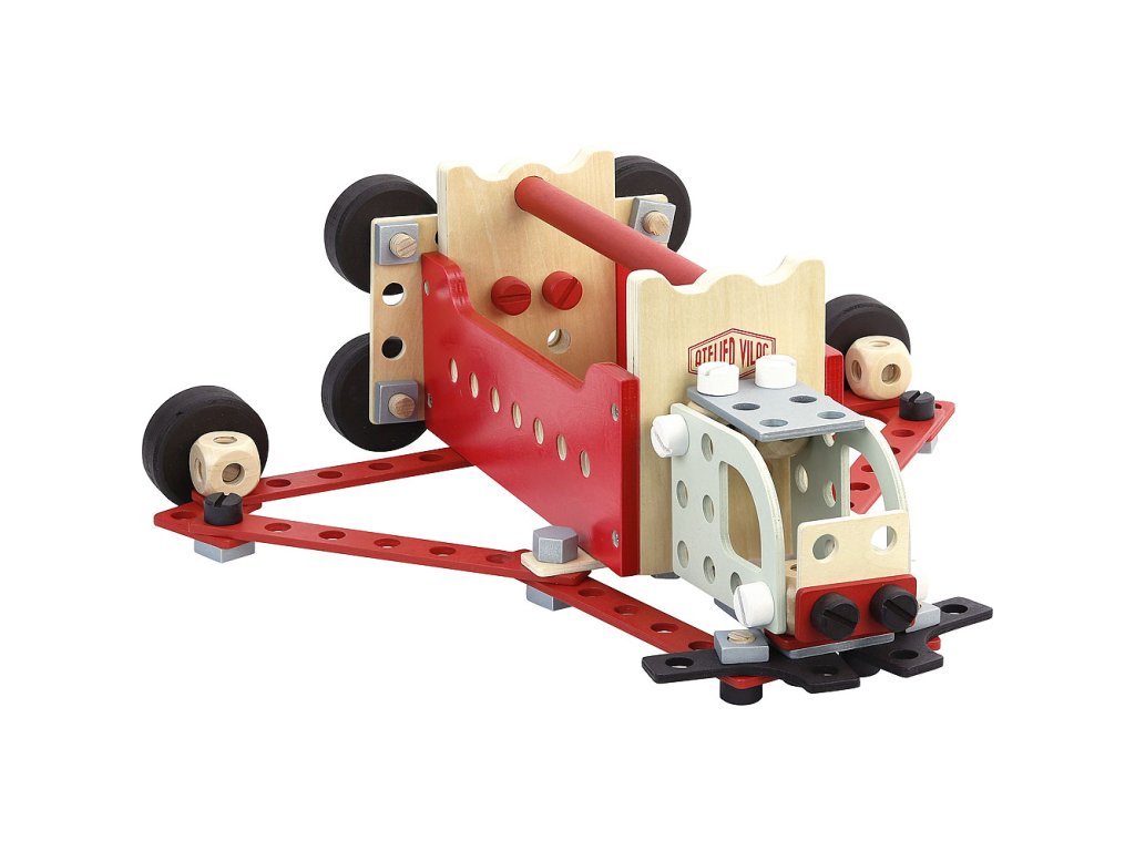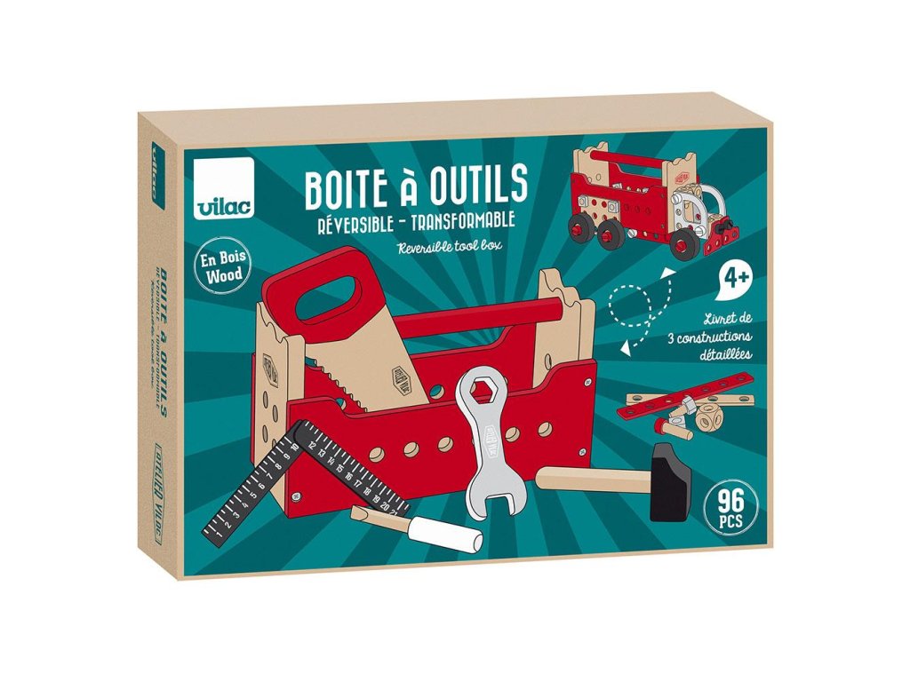 Páni, co to vidím v tomto dobře vybaveném kufru s nářadím? Kladivo, klíč, pila a spousta matic a šroubů.A ještě něco navíc? Tato chytrá sada nástrojů je základem pro mnoho konstrukcí: nákladní auto, jeřáb, robot a mnoho dalších, vše závisí na představivosti dětí. Hlavní vlastnosti: obsahuje 96 ks příslušenstvídesign Ateliéru Vilaclze sestavit 3 modulární konstrukce Ateliér Vilac Postavte, renovujte, udělejte si sami, jedním slovem… Sen! Zcela nová řada pro kutily. Jako byste opravdu cítili vůni dřeva, dotýkali se hoblin z bukového dřeva na podlaze dílny. Ponořte se s námi do tohoto kreativního světa, který dá volnou ruku fantazii malých i velkých dětí. Krásná vintage kolekce s modulárními a doplňkovými hračkami.Doplňkové parametry