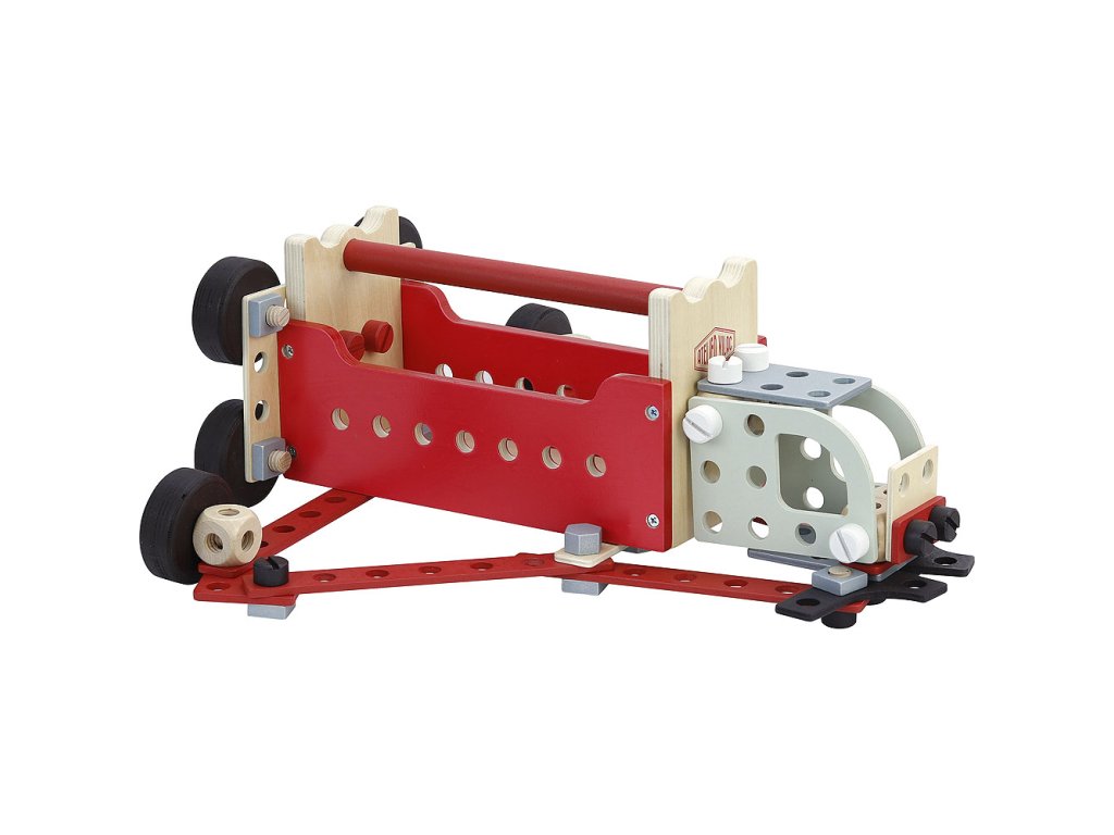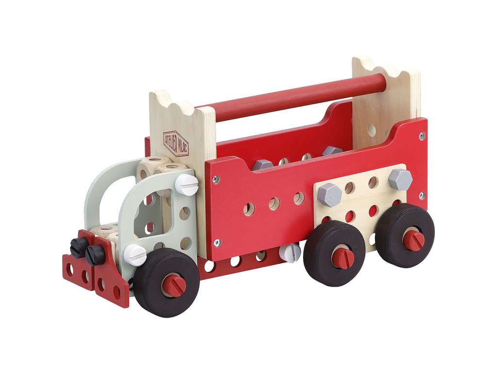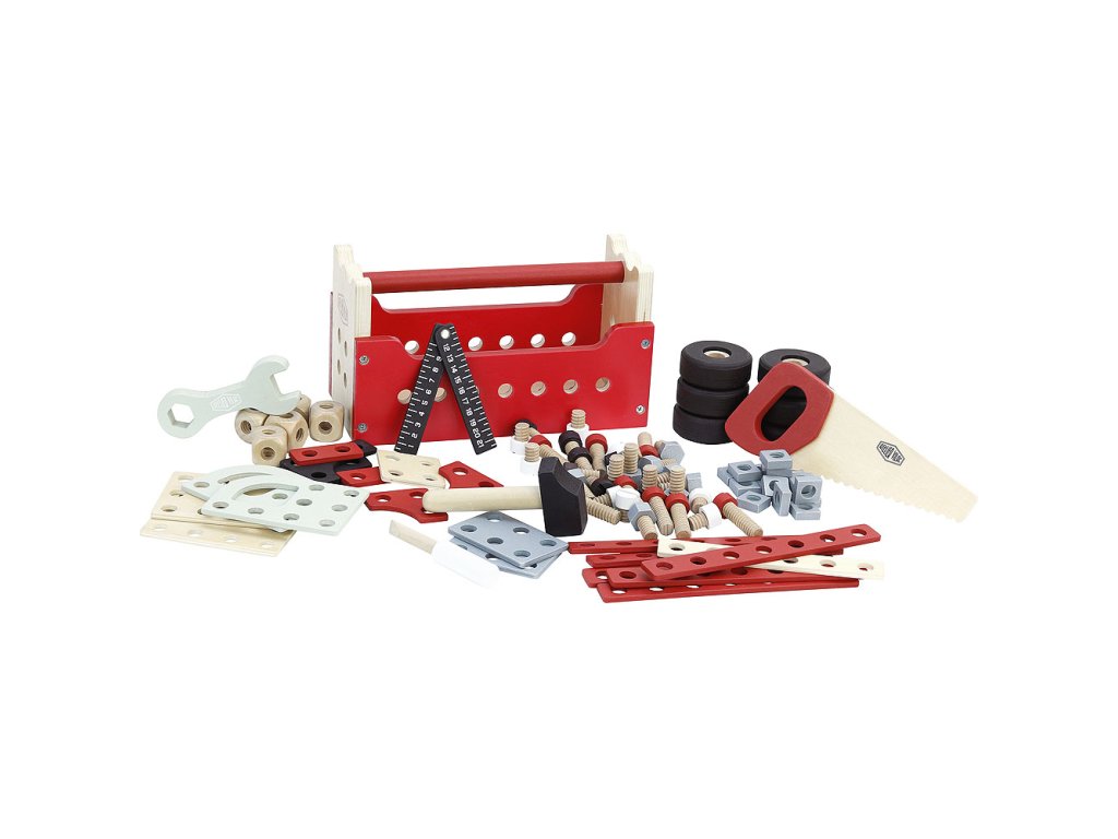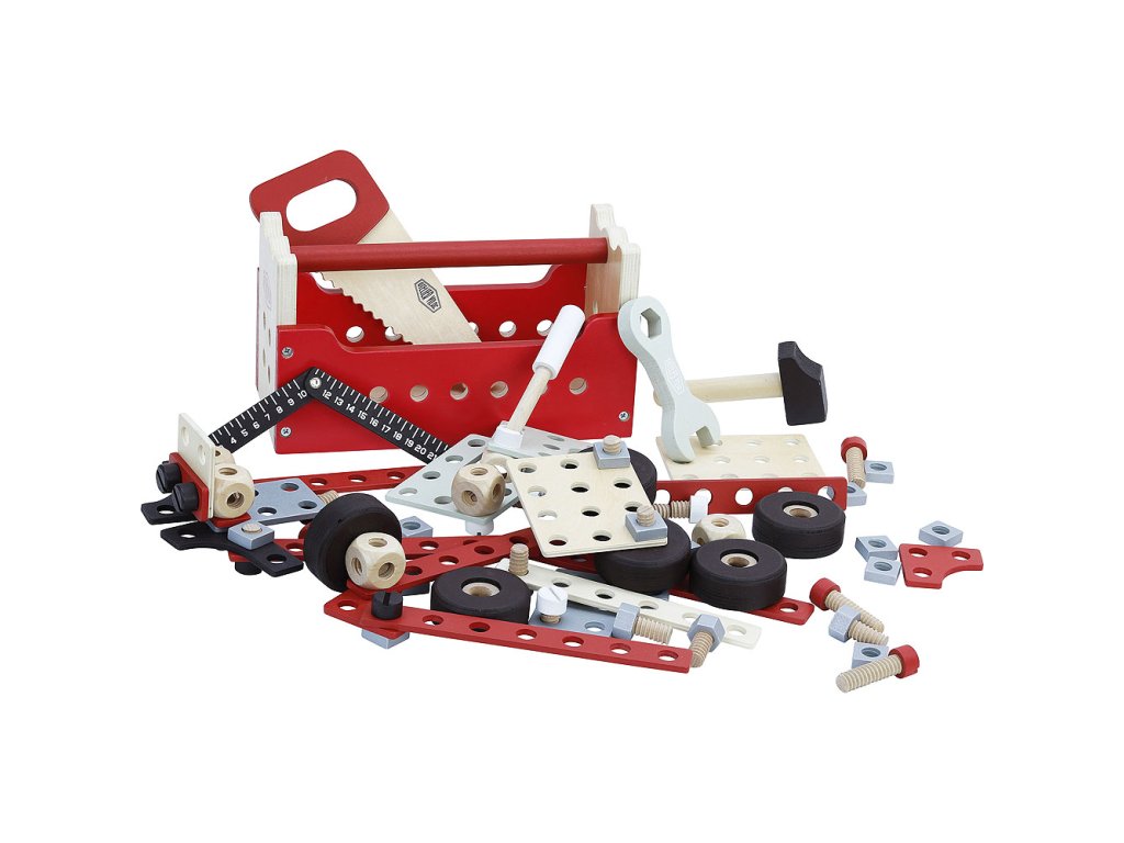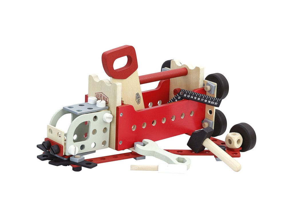 Páni, co to vidím v tomto dobře vybaveném kufru s nářadím? Kladivo, klíč, pila a spousta matic a šroubů.A ještě něco navíc? Tato chytrá sada nástrojů je základem pro mnoho konstrukcí: nákladní auto, jeřáb, robot a mnoho dalších, vše závisí na představivosti dětí. Hlavní vlastnosti: obsahuje 96 ks příslušenstvídesign Ateliéru Vilaclze sestavit 3 modulární konstrukce Ateliér Vilac Postavte, renovujte, udělejte si sami, jedním slovem… Sen! Zcela nová řada pro kutily. Jako byste opravdu cítili vůni dřeva, dotýkali se hoblin z bukového dřeva na podlaze dílny. Ponořte se s námi do tohoto kreativního světa, který dá volnou ruku fantazii malých i velkých dětí. Krásná vintage kolekce s modulárními a doplňkovými hračkami.Doplňkové parametry