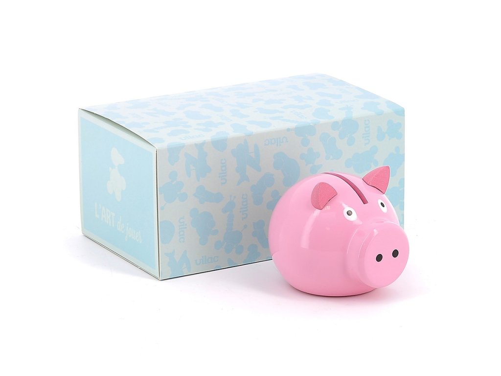Pokladnička ve tvaru roztomilého prasátka v růžové barvě, vyrobena z lakovaného dřeva. Vyrobeno ve Francii. Hlavní vlastnosti: vyrobeno ve FranciiDoplňkové parametry