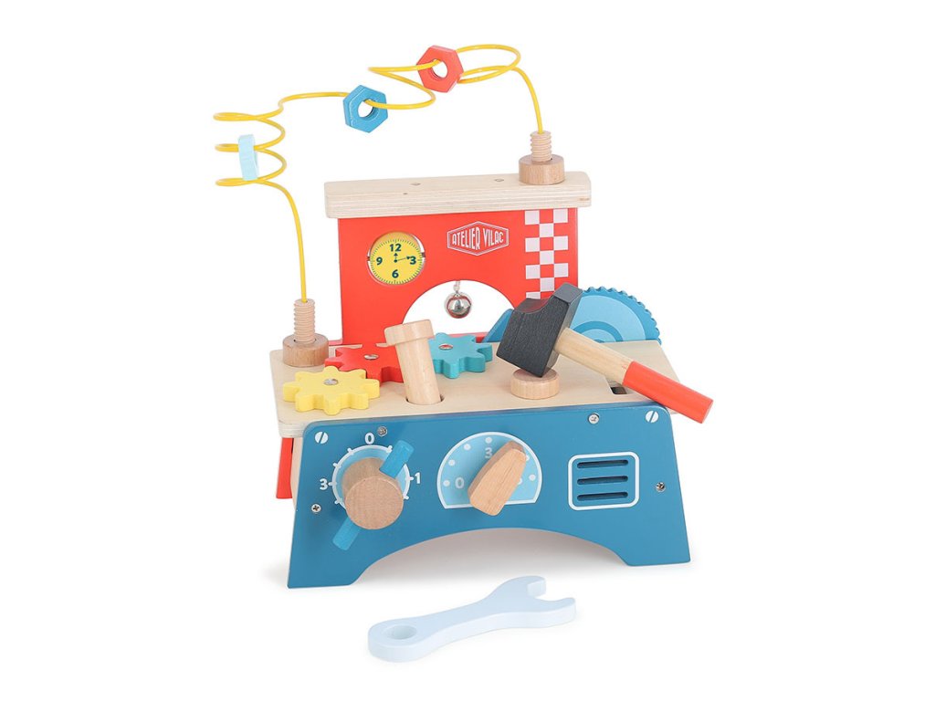 Tento pracovní stůl se spoustou aktivit je ideální podporou pro rozvoj jemné motoriky a koordinace ruky a oka. Podněcuje kreativní myšlení a vývoj představivosti. Stůl obsahuje např. malé kladívko pro zatloukání dvou kolíků, zvoneček, kotouč pily, který vydává zvuk, když s ním otočíte, tři ozubená kolečka. A matice k přišroubování a odšroubování před jízdou po labyrintu. Multi-aktivitní pracovní stůl poskytuje dětem různé podněty, což podporuje rozvoj jejich hmatu, zraku a sluchu. Ideální hračka pro metodu Montessori. Jsou to speciálně navržené hračky, které vycházejí z pedagogické metody vyvinuté italskou lékařkou a pedagožkou Marií Montessori. Tyto hračky jsou navrženy tak, aby podporovaly přirozený vývoj dítěte a umožňovaly jim objevovat svět okolo sebe pomocí vlastního zájmu a aktivity. Montessori pedagogika klade také důraz na respekt k individuálnímu rytmu každého dítěte. Rozvíjí také psychomotorické dovednosti a podněcuje dětskou fantazii. Díky němu si dítě může hrát a učit se mnoho hodin. Přírodní dřevo použité při výrobě zajišťuje bezpečnost a krásný nadčasový vzhled, perfektní doplněk při zařizování dětského pokoje. Při hře se děti učí sdílet, spolupracovat a komunikovat. To podporuje rozvoj sociálních dovedností a přípravu na interakce s vrstevníky. Hlavní vlastnosti: podporuje rozvoj jemné motoriky a koordinace ruky a okapodněcuje kreativní myšlení a vývoj představivostiideální hračka pro metodu Montessorikognitivní vývojedukace skrze hruDoplňkové parametry