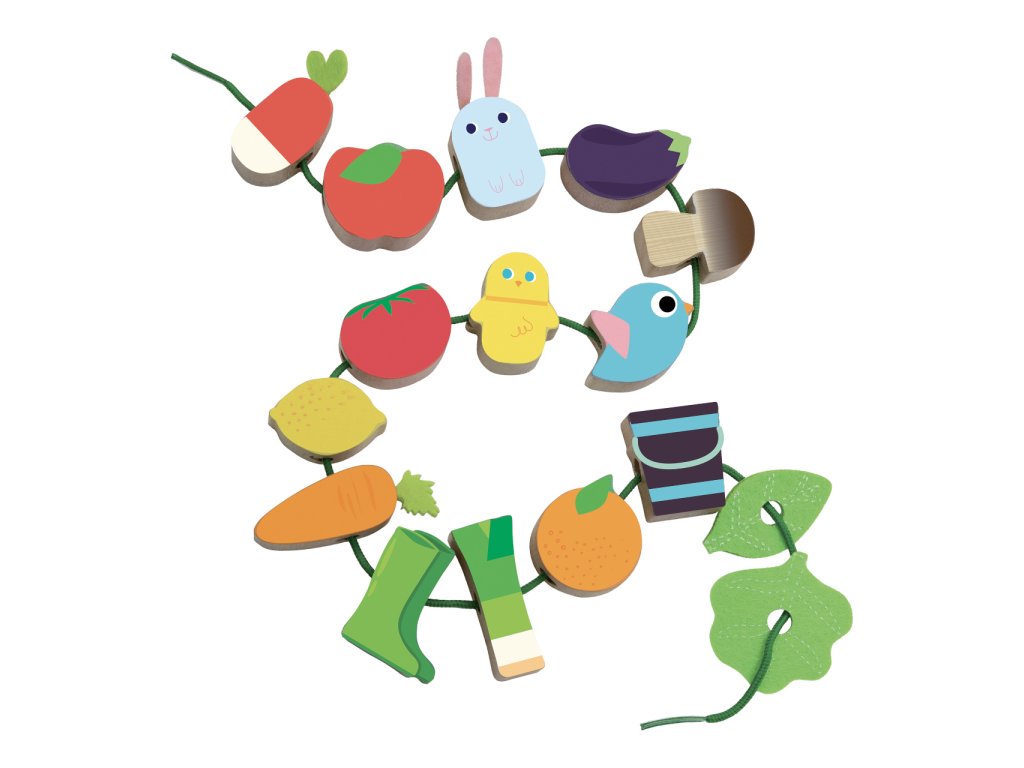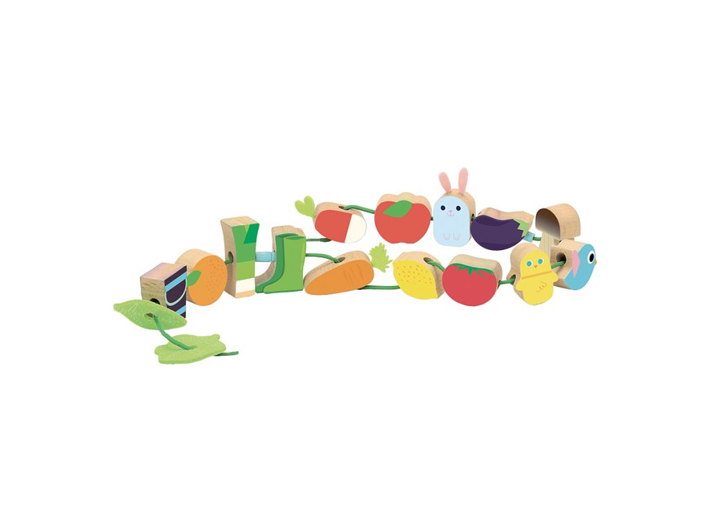 Krásná provlékačka v motivu farmy. V kompaktním balení najdete 14 ilustrovaných dřevěných korálků (např. lilek, rajče, ptáček, gumáky), které děti mohou navlékat na textilní šňůrku. Hračka pomáhá s rozvojem jemné motoriky. Vybaveno bezpečnostními sponami. Vhodné od 18 měsíců. Hlavní vlastnosti: 14 korálkůvyrobeno ekologicky, šetrně k životnímu prostředíDoplňkové parametry