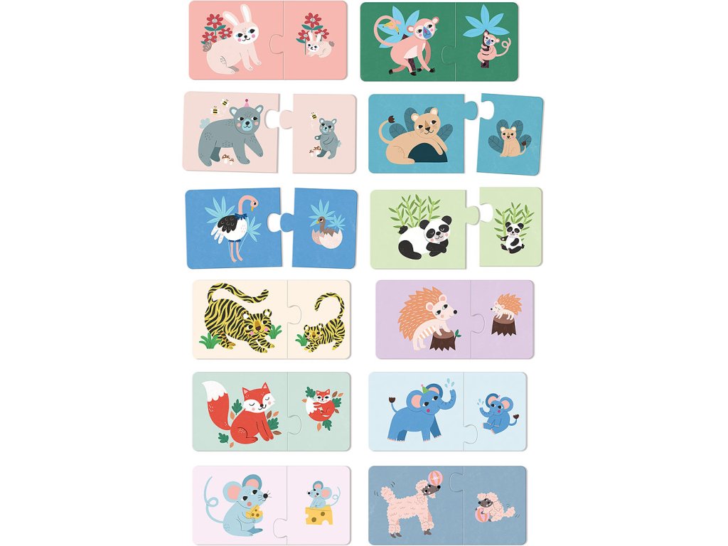 Najde lvíče svou maminku? A mláďata pandy, tygra nebo lišky? Tyto dřevěné puzzle pomohou nejmenším rozvíjet jemnou motoriku, postřeh a dají jim možnost obohatit si slovní zásobu o pojmenování zvířátek a barev. Hlavní vlastnosti: obsahuje 24 dílkůobjevování zvířat a barevpodporuje jemnou motorikupraktické balení v dřevěné krabičceDoplňkové parametry