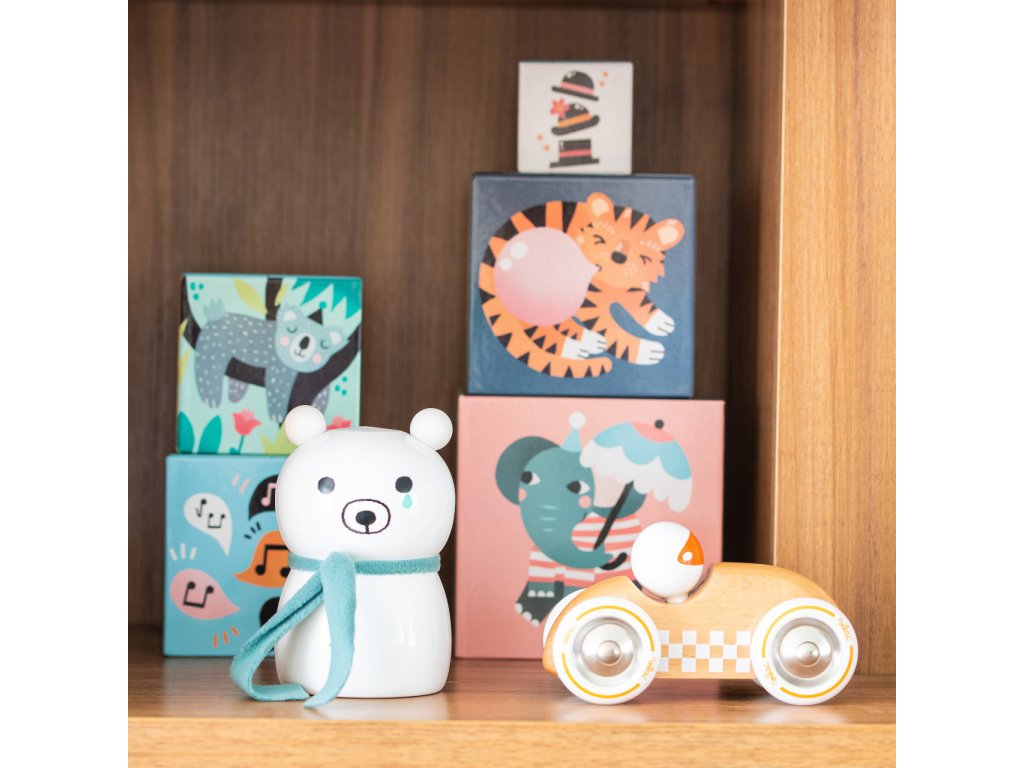 Deset kartonových skládacích kostek s krásnými ilustracemi Michelle Carlslund. Děti se při hraní naučí jak skládat kostky, tak rozpoznávat zvířata, barvy a počty. Rozvíjí koordinaci ruka-oko, a tím celkovou zručnost dětí. Hlavní vlastnosti: 10 ks kostekdesign Michelle Carlslundvyrobeno ekologicky, šetrně k životnímu prostředí Cestujte s námi v naivním a elegantním světě dánské ilustrátorky Michelle Carlslund, světě jemných barev, který je plný roztomilých medvědů a přátelských ptáčků. V roce 2010, když Michelle ještě studovala grafický design, vytiskla doma své ilustrace a zkusila je prodat na designovém trhu, kde se setkaly s velkým úspěchem! Několik obchůdků chtělo začít prodávat její výtvory, a tak ji napadlo, že by bylo fajn začít podnikat. Michelle se rychle stala uznávanou nezávislou ilustrátorkou. Dnes lze její ekologická grafická díla zakoupit po celém světě v designových buticích, papírnictvích a dětských obchodech. Michelle se inspiruje vším kolem ní. Její výtvory jsou něžné a poetické, stylizovaný a dětinský styl, který se perfektně prolíná s hračkami firmy Vilac. „Jsem hranolky milující, časová optimistka a tvůrkyně ekologických plakátů a ilustrátorka na volné noze se sídlem v dánské Kodani,“ to by řekla ilustrátorka Michelle Carlslundová, kdyby se měla popsat jednou větou.Doplňkové parametry