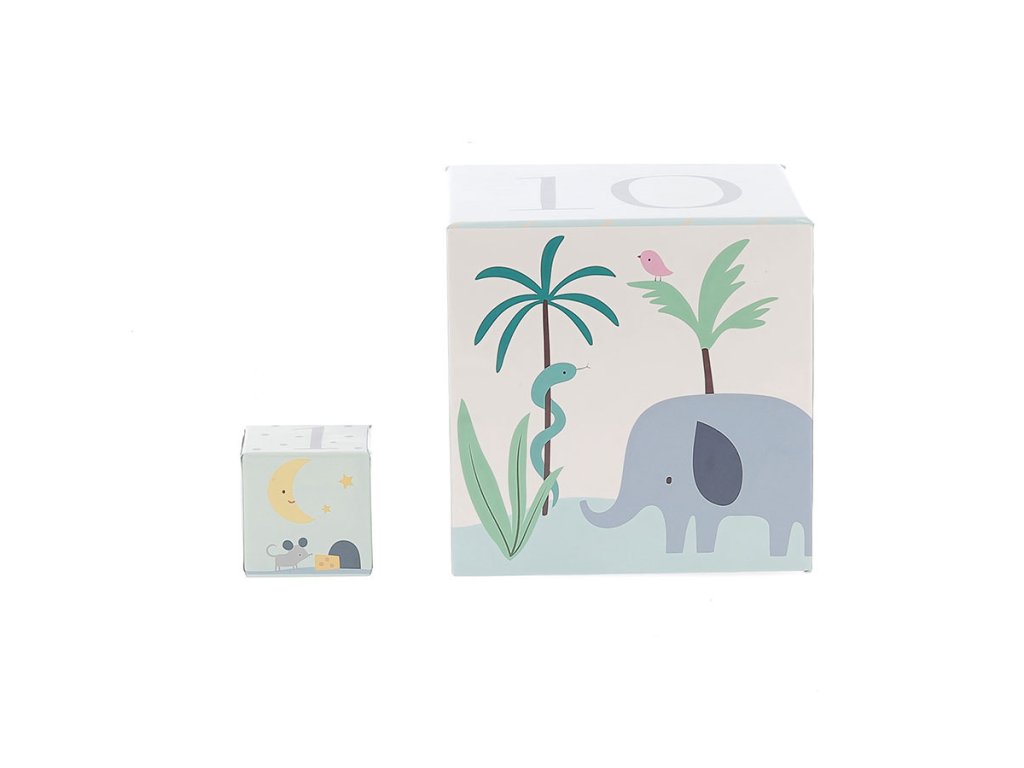 10 ks kartonových skládacích kostek s krásnými ilustracemi od designérky Sarah Betz. Děti od 2 let se při hraní naučí jak skládat kostky, tak rozpoznávat zvířata, barvy a také počítat. Kostky naskládané na sebe, od největší po nejmenší, tvoří věž o výšce přibližně 87 cm. Rozvíjí koordinaci ruka-oko, a tím celkovou zručnost dětí. Vyžaduje vizuální pozornost a schopnost koncentrace. Tato první sada kostek podpoří vývoj vašeho drobečka a bude se vyvíjet s ním. Zpočátku jednoduchá manipulační hra se časem promění ve stavební hru, později hru na učení čísel. Hlavní vlastnosti: 10 ks pevných kartonových kostekvyrobeno ekologicky, šetrně k životnímu prostředírozvíjí koordinaci ruka-oko a celkovou zručnost dětídesign Sarah Betz Sarah Betz vyrostla v Německu, nyní však tvoří ve Francii. Založila zde vlastní značku „Little Cube“. Ani se jí nezdálo o tom, že by mohla svou vášeň pro kreslení a psaní proměnit v úspěšnou kariéru. Už od mala si kreslila a čmárala všude možně, od školních sešitů po stěny dětského pokoje. Rodiče ji v jejím zájmu podporovali a jako dítě si s nimi užila mnoho představivé hry. Vyrůstala v blízkosti lesa, takže byla její tvorba od mala inspirována přírodou. Na procházkách v lese sbírala přírodní materiály, z kterých pak tvořila šperky, také je zakomponovala do svých maleb a knih. Po vystudování grafického a komunikačního designu v Německu a Švýcarsku se přestěhovala do Francie, zde se učila jazyk a pomalu nastartovala svou kariéru v designu. Své vlastní ilustrační studio „Little Cube“ založila v roce 2013.Doplňkové parametry