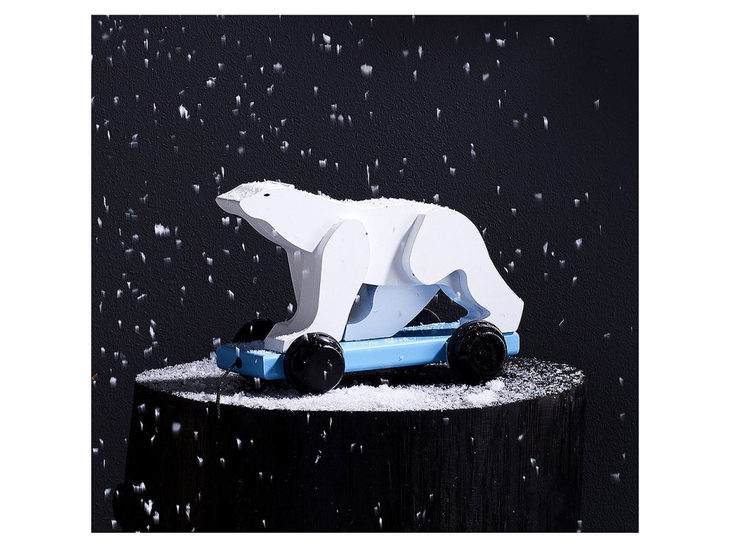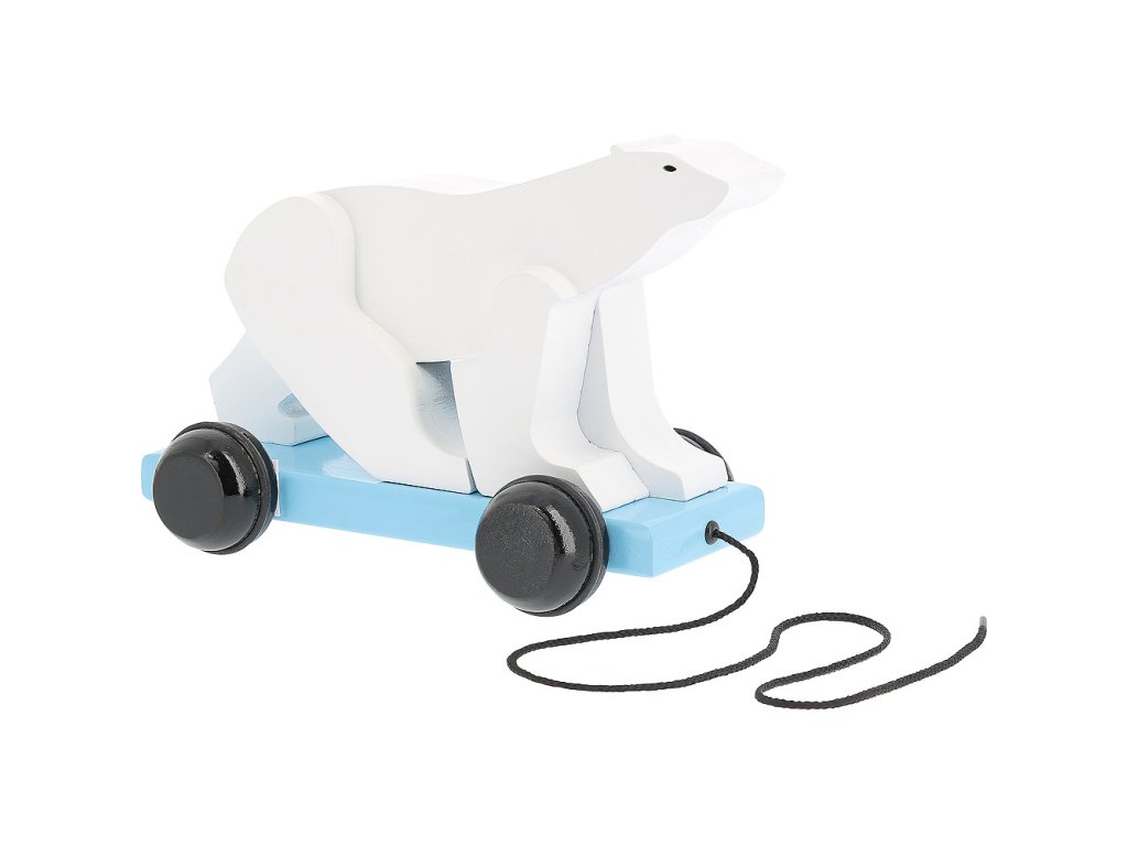 Dřevěný tahací lední mědvěd v designu Francoise Pompona. Hlavní vlastnosti: design Francois Pomponrozvíjí koordinaci pohybů dětí Se svým malým přenosným pracovním stolem se sochař François Pompon (1855–1933) rád procházel po pařížském Jardin des Plantes (veřejný park a botanická zahrada). Tam mohl pozorovat zvířata a vyrábět jejich modely v malém měřítku. Zpět ve svém ateliéru vyřezával medvědy, pantery, ale také psy, kuřata a králíky, zjednodušováním tvarů nacházel podstatu každého zvířete. Před očima návštěvníků Muzea Orsay, kde je uloženo velké množství těchto soch, tak zvířata ožívají! Jeho sochy reinterpretoval umělec Gérard Lo Monaco a ve spolupráci s RMN (sdružení 34 muzeí) a Muzeem Orsay vzdává poctu Pomponovi výrobou této nádherné řady dřevěných hraček.Doplňkové parametry