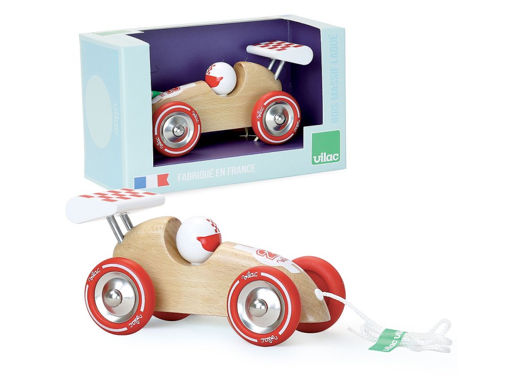 Vilac Tahací závodní auto přírodní s červeným křídlem