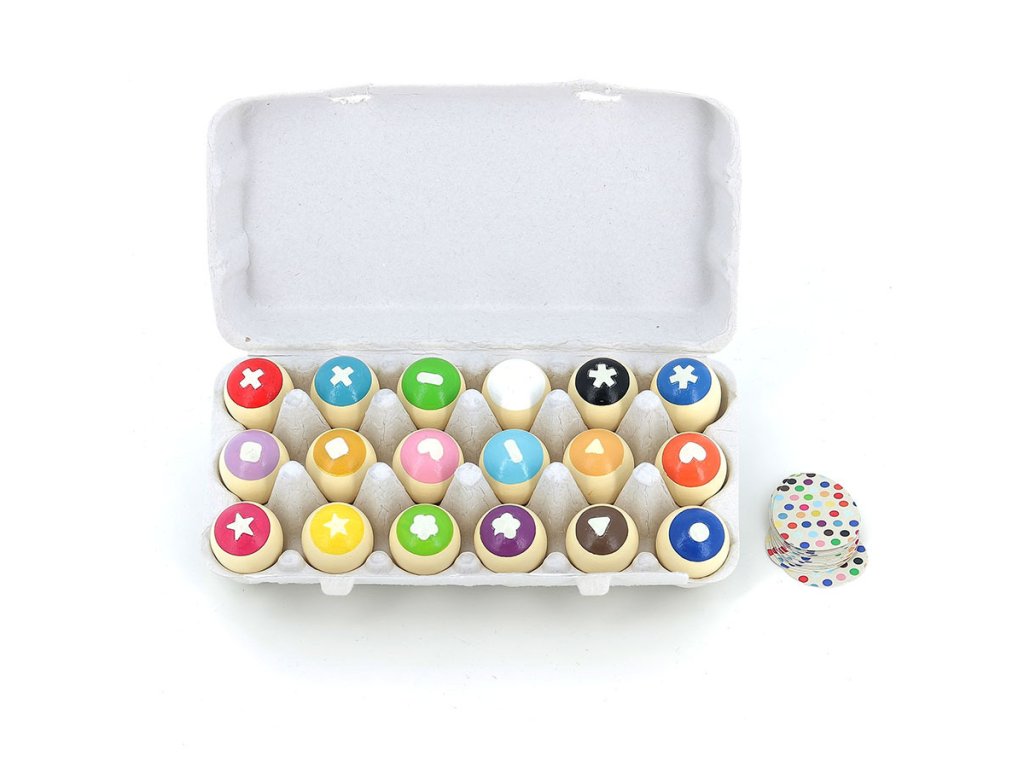 Mémomelette Colors je originální hra s dvěma úrovněmi obtížnosti. Jde o paměťovou hru, podobnou tradičnímu pexesu, kdy hráči musí sestavit páry tím, že najdou shodné znaky pod vejci. Musí spoléhat na svou vizuální paměť. Pro pokročilé je tu možnost ještě náročnější verze, kdy hráči musí najít odpovídající kombinaci barev podle vylosovaných karet. Tato hra je vhodná pro děti od 3 let a je skvělým způsobem, jak zlepšit dětem koncentraci, paměť, vizuální koordinaci, schopnost rozlišování a logického myšlení. Obsah hry: 1 krabička na vajíčka18 dřevěných vajíček18 karet ve tvaru vajíčka s různými symboly a barvami Hlavní vlastnosti: odolná dřevěná hračkarozvoj smyslu pro pozorováníprocvičování pamětizábava pro celou rodinuDoplňkové parametry