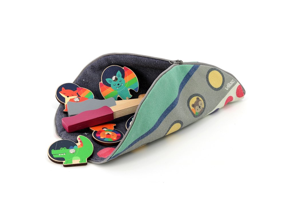 Obklopte děti vesmírnou zábavou plnou pestrobarevných zvířecích astronautů výtvarníka Andyho Westface. Prostřednictvím hry mohou nejmenší rozšiřovat svou slovní zásobu o názvy zvířat a rozvíjet trpělivost i zručnost. Postupem času bude hra okořeněna strategií a snahou vylovit dílky s největší hodnotou, děti tak mohou prohlubovat poznávací a početní dovednosti. Díky praktické a atraktivní taštičce v podobě vesmírné lodi lze součásti vždy snadno uklidit a hra Vás může provázet na cestách. Hlavní vlastnosti: 2 udičky a 10 herních dílkůdesign Andy Westfacepraktické a atraktivní balení Andy Westface je ilustrátor žijící a působící v Hongkongu. Svou prací se snaží zprostředkovat silné pocity a jasné myšlenky za pomoci jednoduchých tvarů, kompozic i barevnosti. Typickými prvky jeho děl jsou zvířata a duha, které si oblíbil pro jejich čistotu, upřímnost a schopnost vzbuzovat radost.Doplňkové parametry