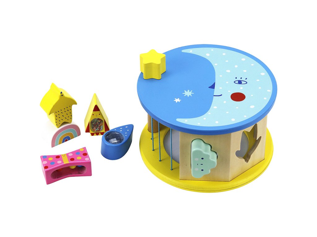 Vydejte se do vesmíru a objevujte nové tvary a zvuky. Nejpoutavější je určitě kapička s úžasným kaleidoskopem! Tento vkládací box, navržený naším týmem kreativních matek a hravých otců, pomůže naučit se jemné motorické dovednosti a trpělivosti. Hlavní vlastnosti: tělo vkládací kostky lze použít jako bubenobsahuje 6 zvukových tvarů design Suzy Ultman Suzy Ultman od dětství vytvářela hračky a knížky pro svou rodinu a přátele. Rozená vypravěčka, Suzy je také ilustrátorkou, produktovou designérkou, tvůrkyní hraček a knížek. Vytváří hlavně sofistikované a jednoduché předměty, které inspirují a potěší mladé i staré. Suzy vyrostla v Pensylvánii, ale její život a práce ji přivedly k cestám po světě, nejen jako turistku. Žila ve městech od Los Angeles po Portland, přes moře v Amsterdamu a pak zpět v Bostonu. Suzyiny poznatky z těchto míst ji výrazně ovlivňují v tvorbě, ať už jde o zkrášlení Vaší knihovny nebo o výzdobu dětského pokoje, produkty Suzy vychází z malých detailů našeho vnitřního světa, které nás umí rozesmát, které nás spojují s lidmi po celém světě. Když zrovna ve své dílně neskládá papír, nedesignuje textilie nebo nevytváří hračky, najdete ji ve starožitnictvích, ve kterých hledá poklady, na bleším trhu nebo v přírodě.Doplňkové parametry