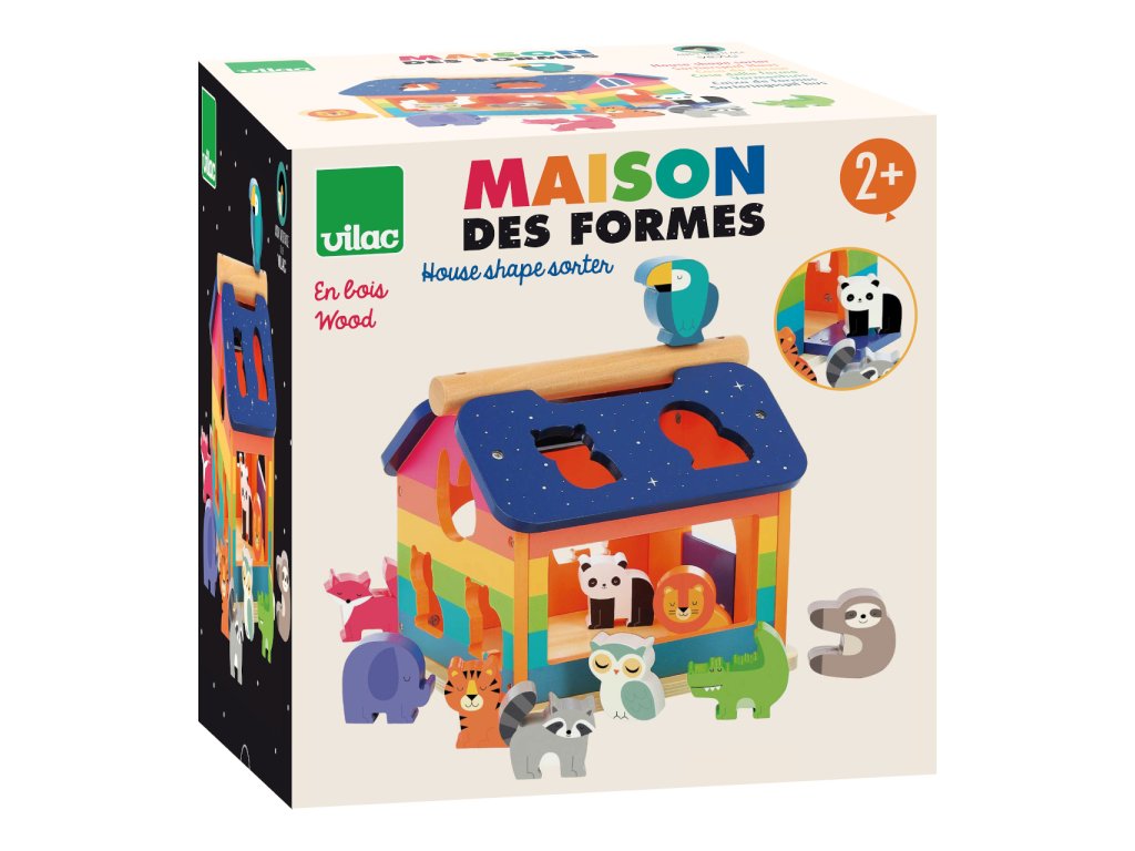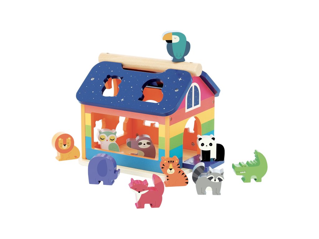 Tříděním a přemisťováním zvířátek se děti zábavně učí rozeznávat tvary, a lze je tak po krůčcích vést k samostatné hře v souladu s výukovými metodami Montessori. Rozmanité pestrobarevné figurky mohou správným pojmenováváním a přiřazováním charakteristických vlastností pomoci s rozvojem poznávacích dovedností a fantazie. Domeček je vybaven otevíratelnými dvířky, které jsou pružně zavěšeny tak, aby dětským prstíkům nehrozilo skřípnutí. Praktické madlo na střeše umožňuje snadnou manipulaci a přenášení. Hračka kombinuje robustní díly z masivního dřeva a odolné překližky, které zaručují vysokou životnost. Hlavní vlastnosti: domeček a 10 vkládacích figurekdesign Andy Westfaceatraktivní a odolné zpracování Andy Westface je ilustrátor žijící a působící v Hongkongu. Svou prací se snaží zprostředkovat silné pocity a jasné myšlenky za pomoci jednoduchých tvarů, kompozic i barevnosti. Typickými prvky jeho děl jsou zvířata a duha, které si oblíbil pro jejich čistotu, upřímnost a schopnost vzbuzovat radost.Doplňkové parametry