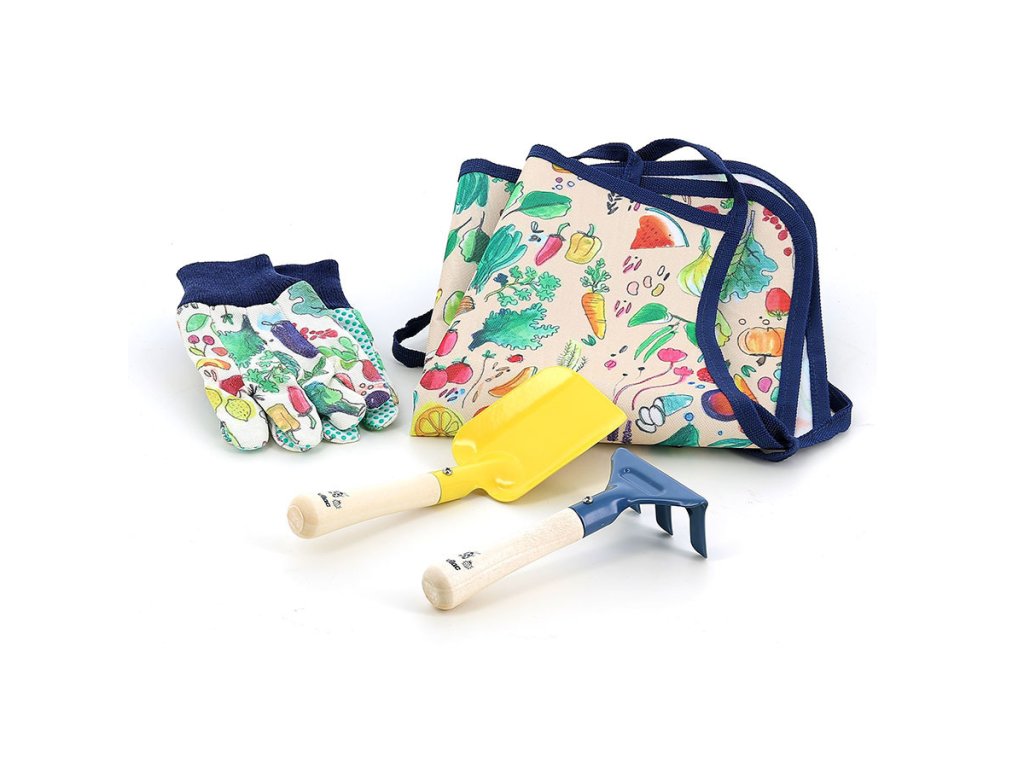 Bezpečný set nářadí na zahradu, který je velikostně přizpůsobený malým dětským ručičkám. Dodáván v tematicky ilustrované krabičce. Set obsahuje ruční hrábě, rýč, pracovní zástěru a rukavice. Mladí zahradníci je mohou použít při přesazování květin, sázení zeleniny nebo rostlin. Děti se tak mohou dozvědět více o životních cyklech rostlin, úloze opylujícího hmyzu a důležitosti péče o Zemi. Nářadí má pevnou dřevěnou rukojeť. Hlavní vlastnosti: ideální velikost pro dětirozvíjí motoriku a vztah k příroděvyrobeno z kovu, dřevěná násadaDoplňkové parametry