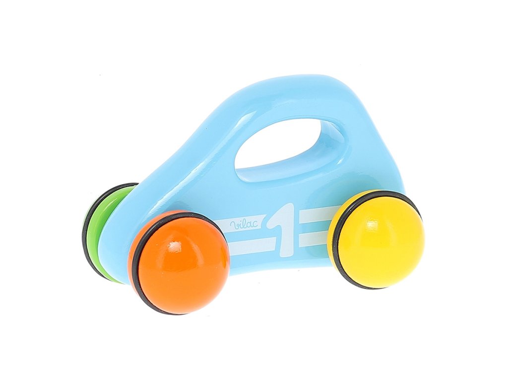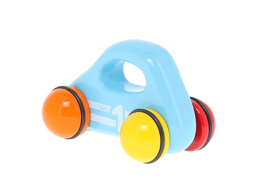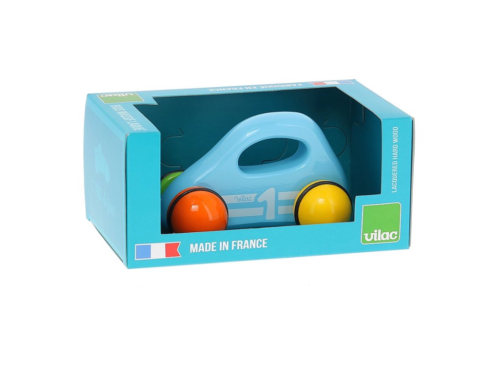 Modré závodní auto speciálního dizajnu, vyrobeno z lakovaného dřeva s čtyřbarevnými pogumovanými koly. Je vhodné jak ke hraní tak jako dekorace do pokojů dětí či dospělých. Vyrobeno ve Francii. Hlavní vlastnosti: vyrobeno ve FranciiDoplňkové parametry