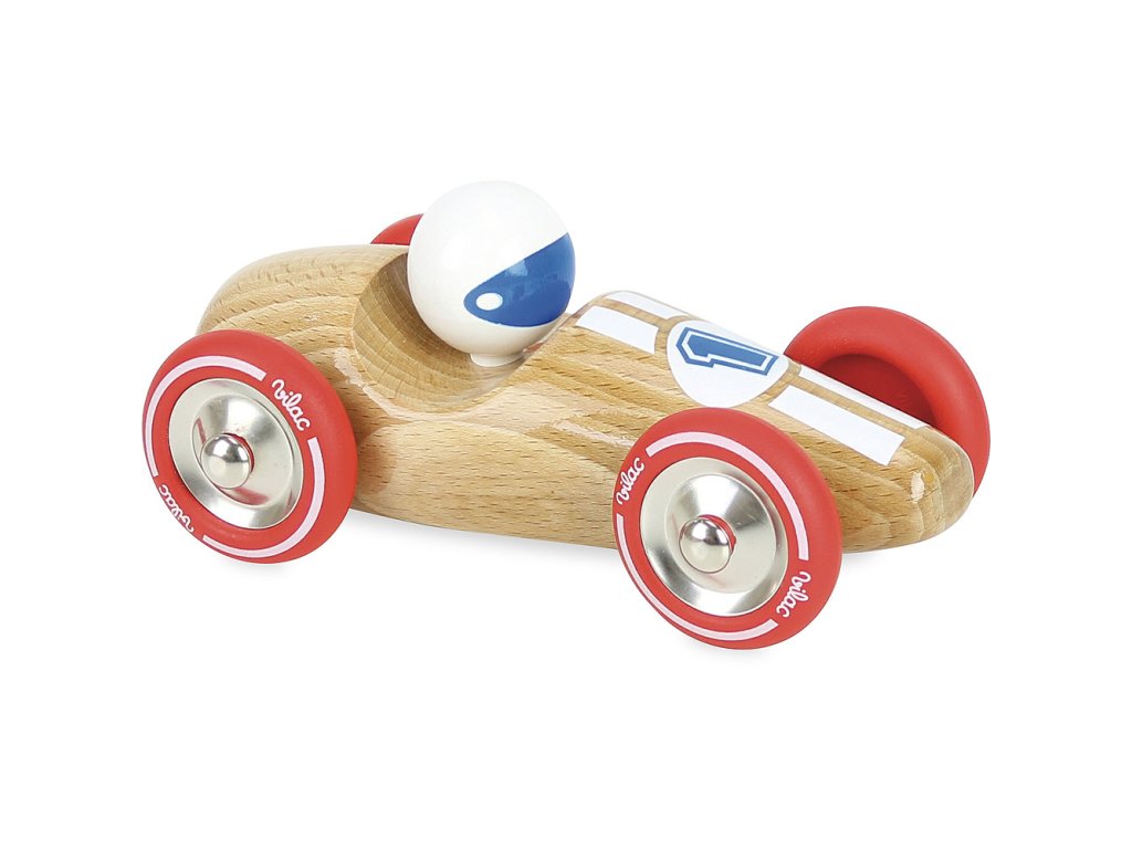 Závodní auto přírodní barvy vyrobeno z lakovaného dřeva s kovovými pogumovanými koly. Je vhodné jak ke hraní tak jako dekorace do pokojů dětí či dospělých. Vyrobeno ve Francii. Hlavní vlastnosti: vyrobeno ve FranciiDoplňkové parametry
