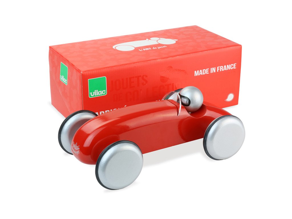 Červené závodní auto vyrobeno z lakovaného dřeva. Je vhodné jak ke hraní tak jako dekorace do pokojů dětí či dospělých. Vyrobeno ve Francii. Hlavní vlastnosti: vyrobeno ve FranciiDoplňkové parametry
