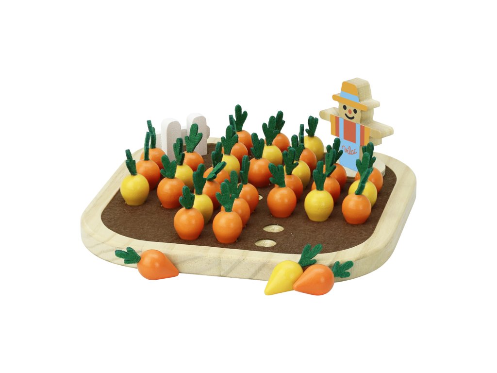 Dnes je den sklizně! Dokážete sklidit všechnu mrkev ze zeleninového záhonku tak, aby na konci zůstala jen jedna? A hop! Originální dřevěná hra solitaire (hra pro 1 hráče) s figurkami ve tvaru malé mrkve pro potěšení labužníků. Hlavní vlastnosti: 33 dřevěných mrkvívyrobeno ze dřeva a plstiDoplňkové parametry
